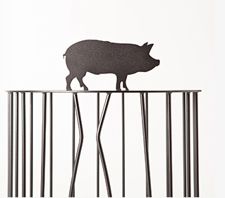 茶幾的特點是擁有黑色磨砂或鍍金的家禽或豬的形狀。